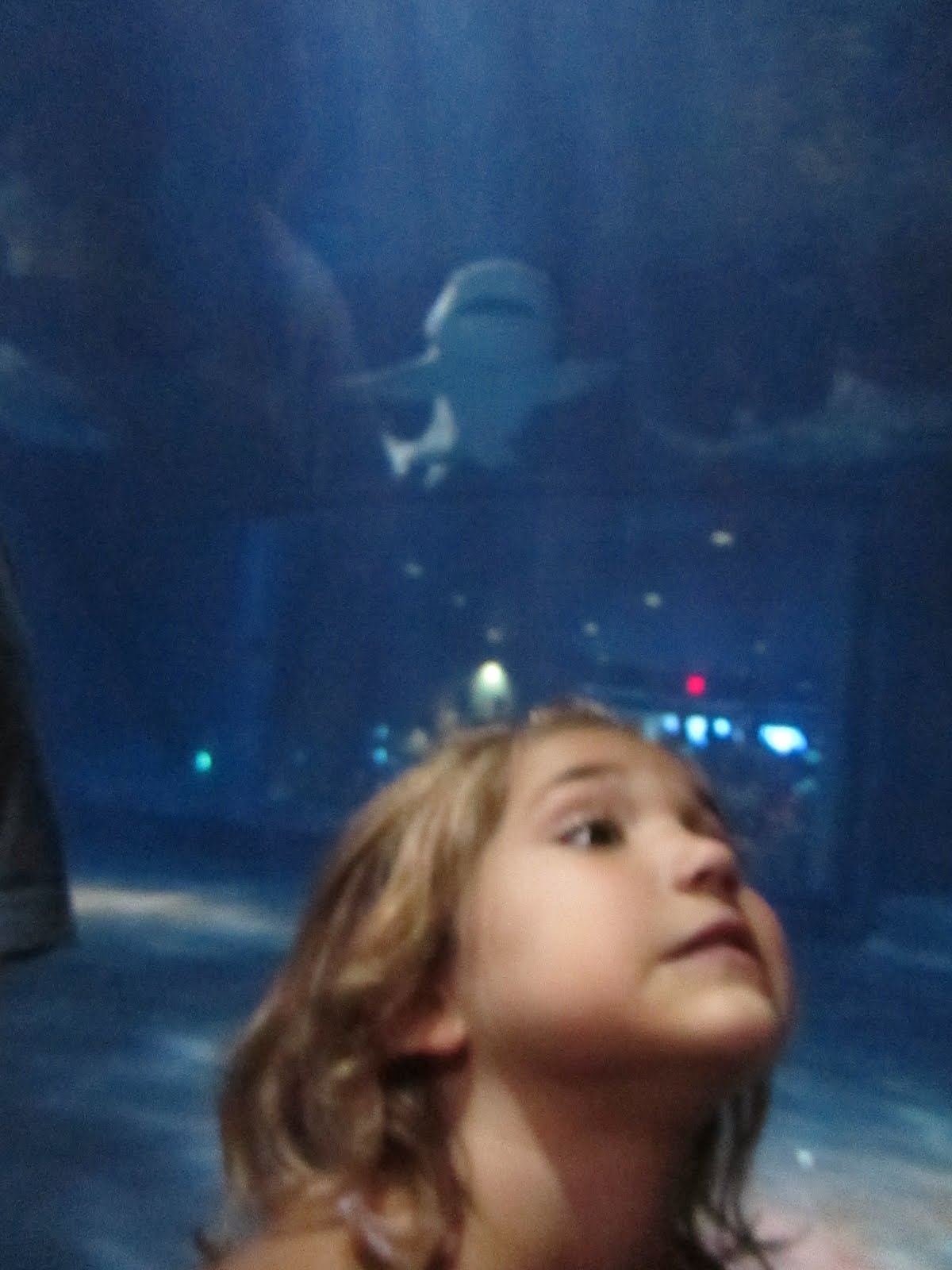 Here are my boys waiting in the underwater viewing tube for the shark feeding to begin.